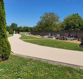 Nous proposons aménagement, entretien et désherbage écologique des allées de cimetière, ainsi que dallage en béton drainant.