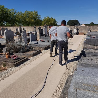 Spécialistes de l'entretien et aménagement des allées de cimetière pour collectivités.