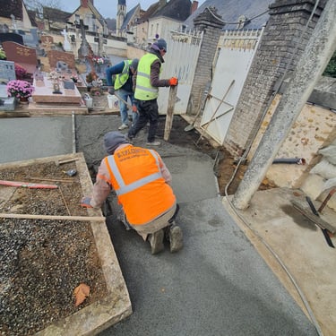 📞 Contactez B.T.P.I. CENTRE pour vos travaux de maçonnerie paysagère en cimetière.